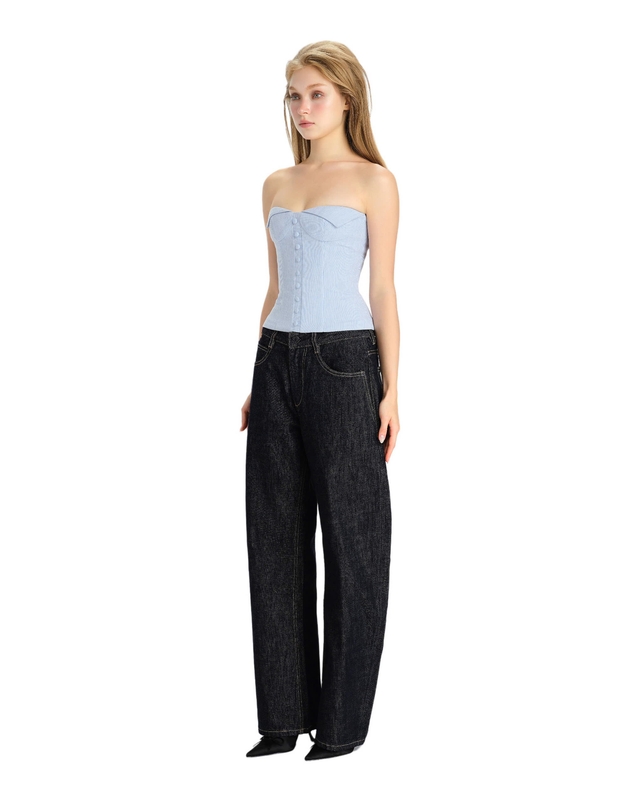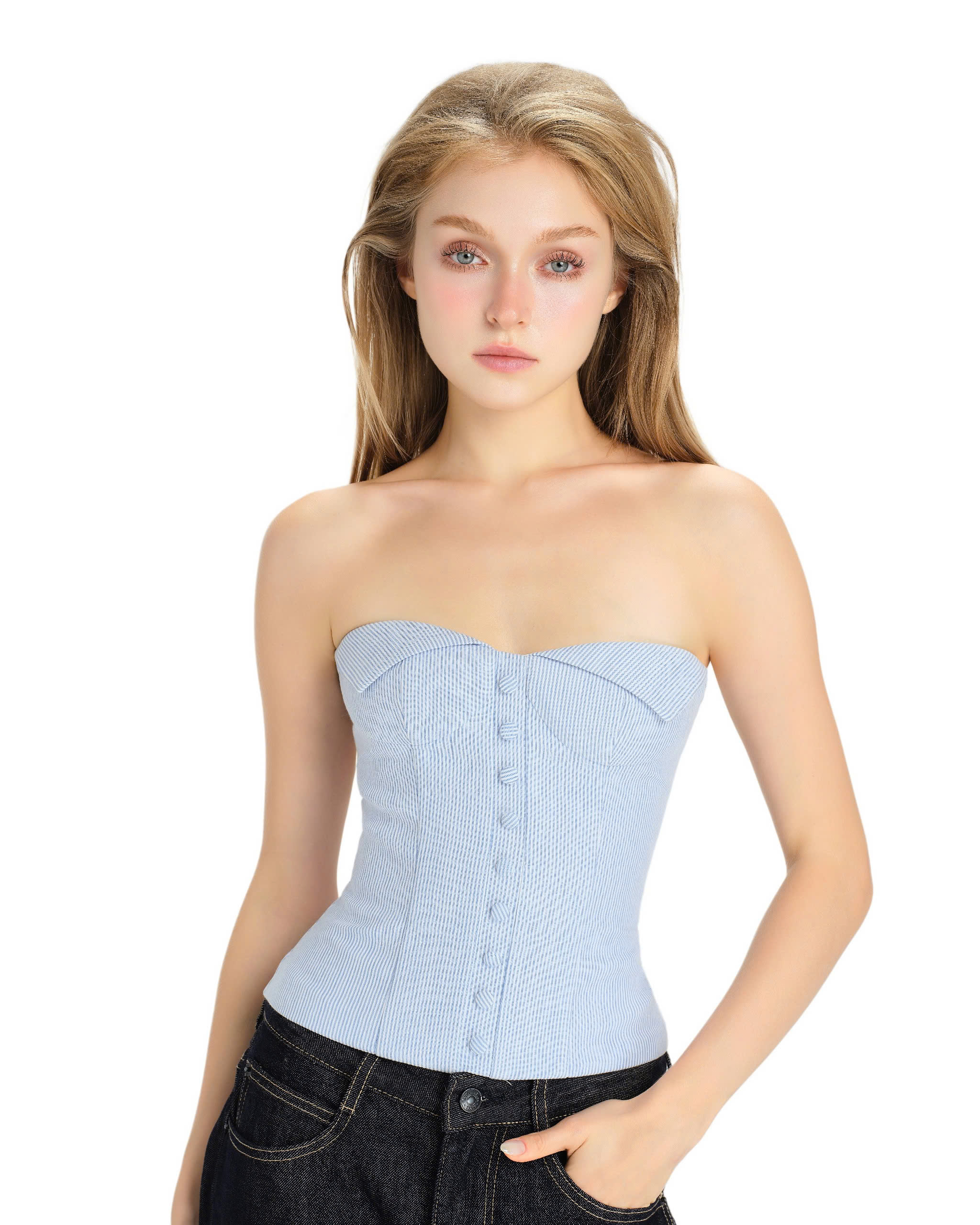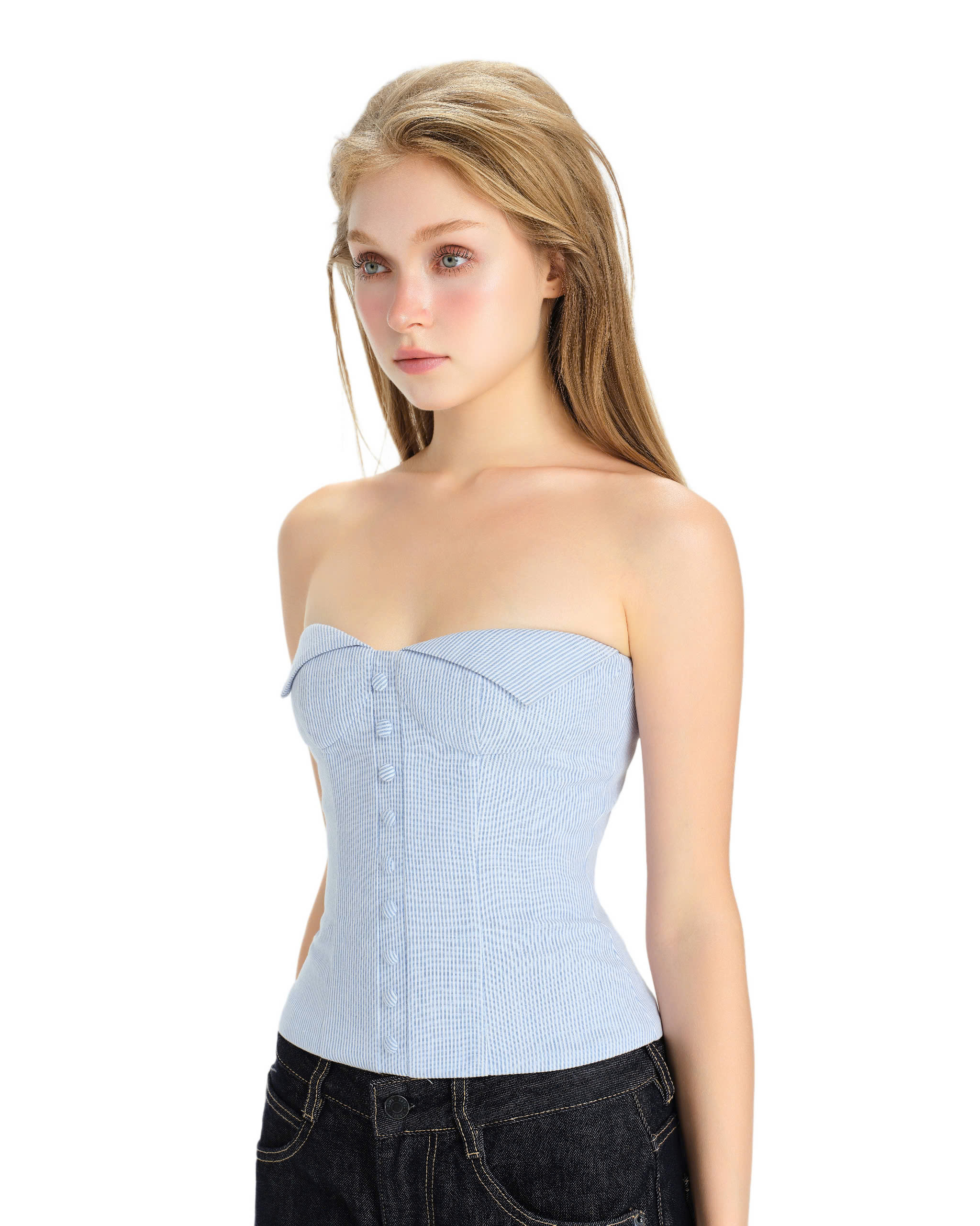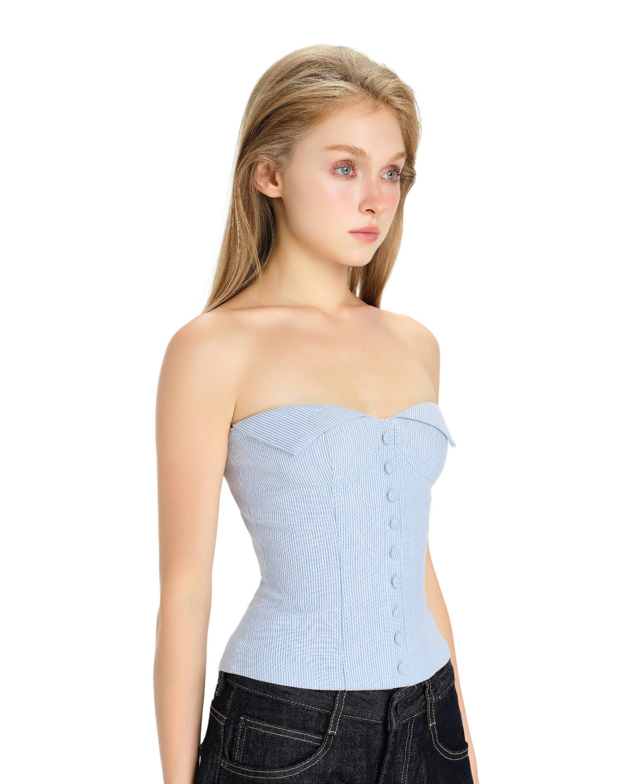 Strapless corset, vertical stripes pattern.