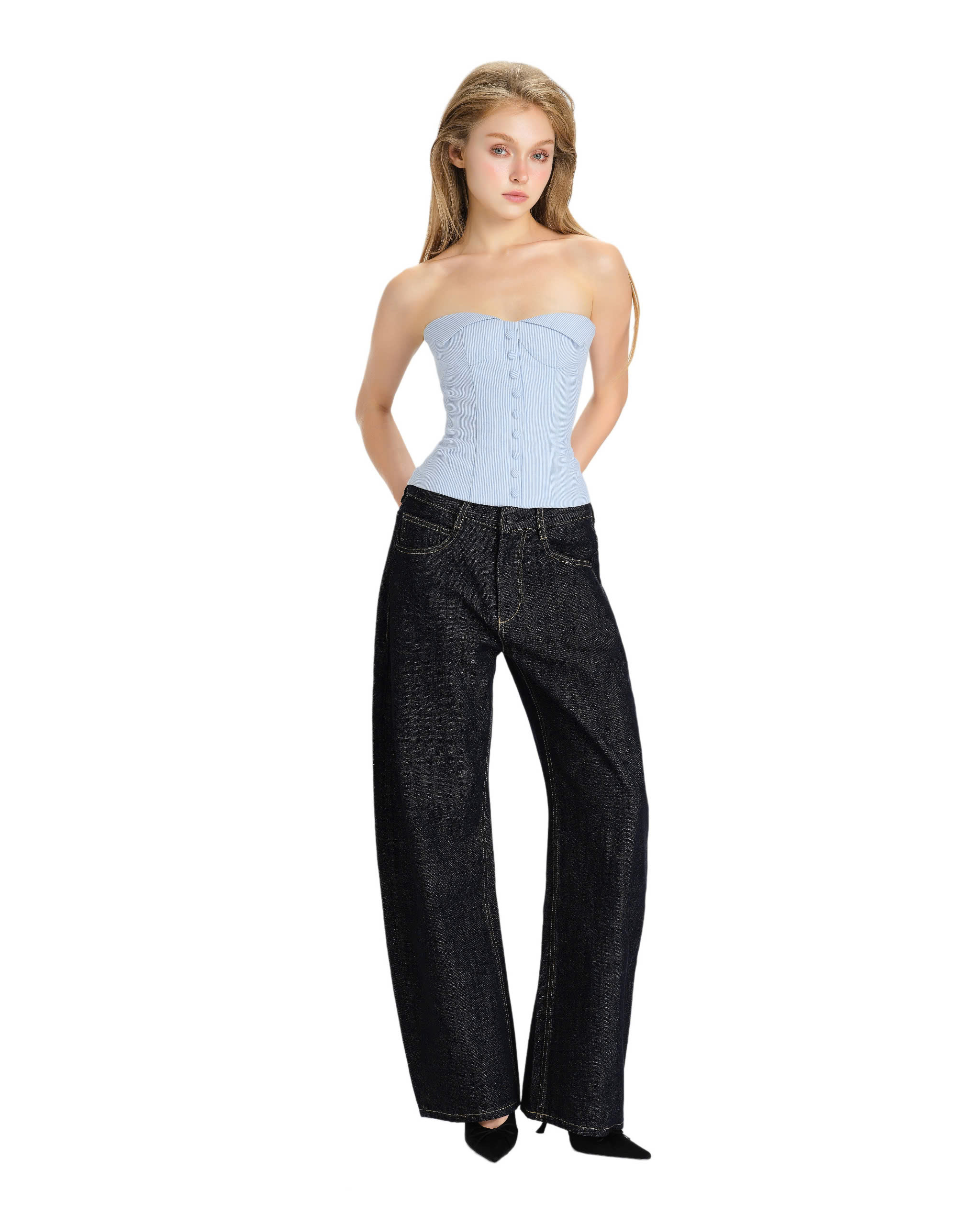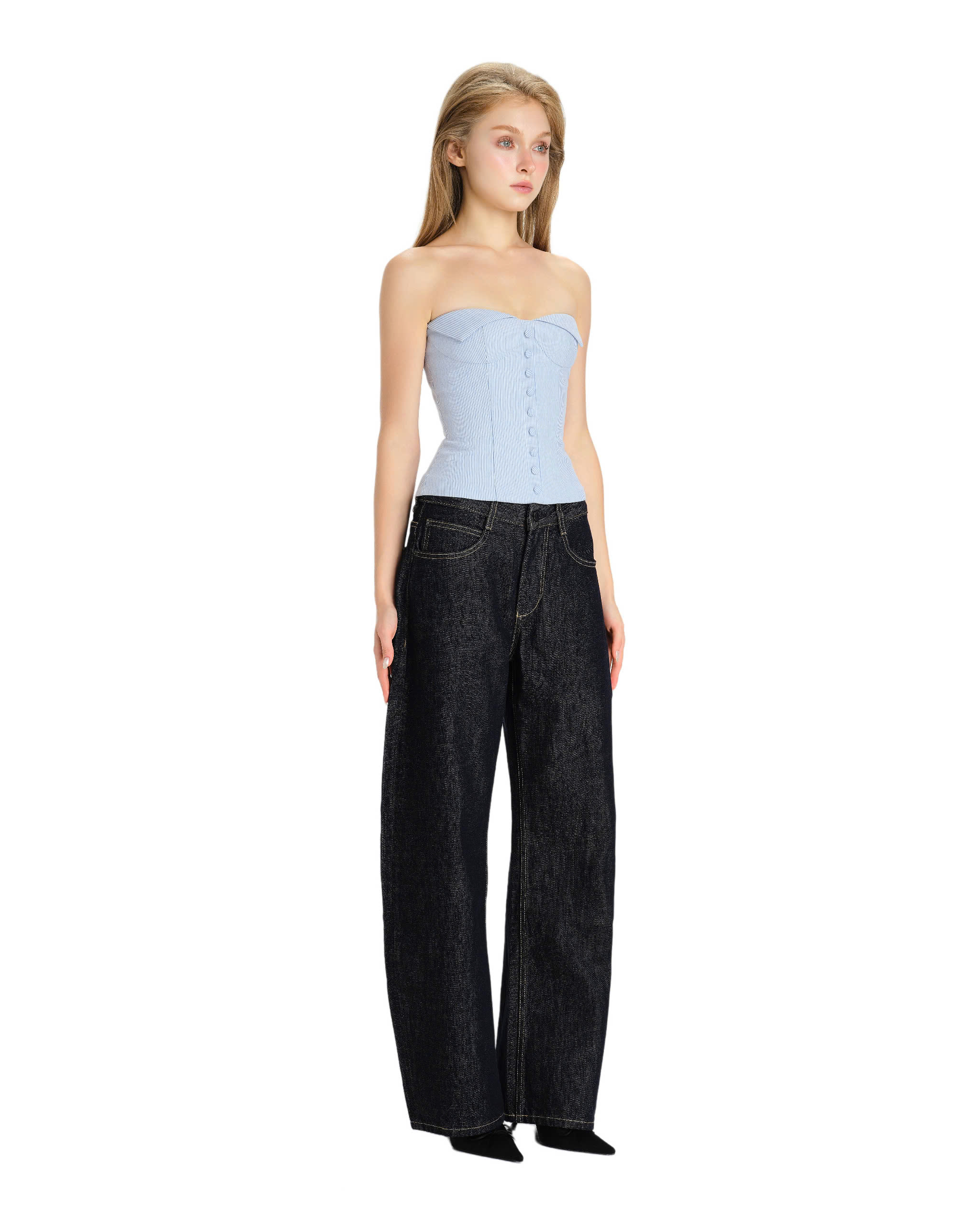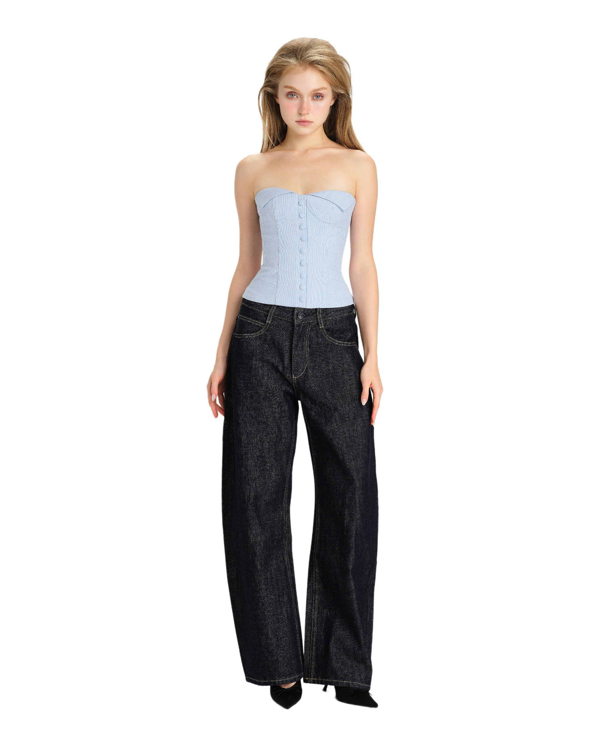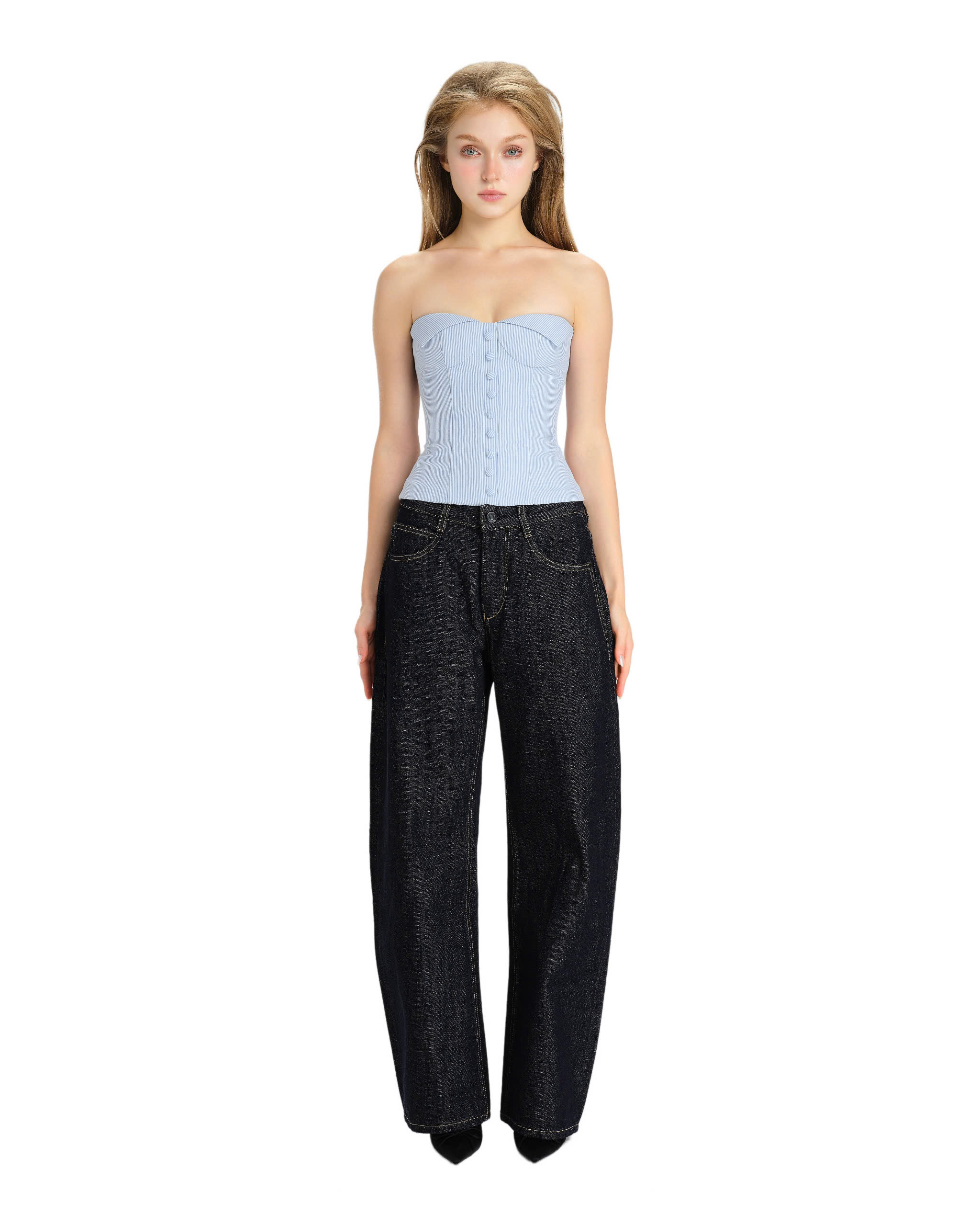 Strapless corset, vertical stripes pattern.