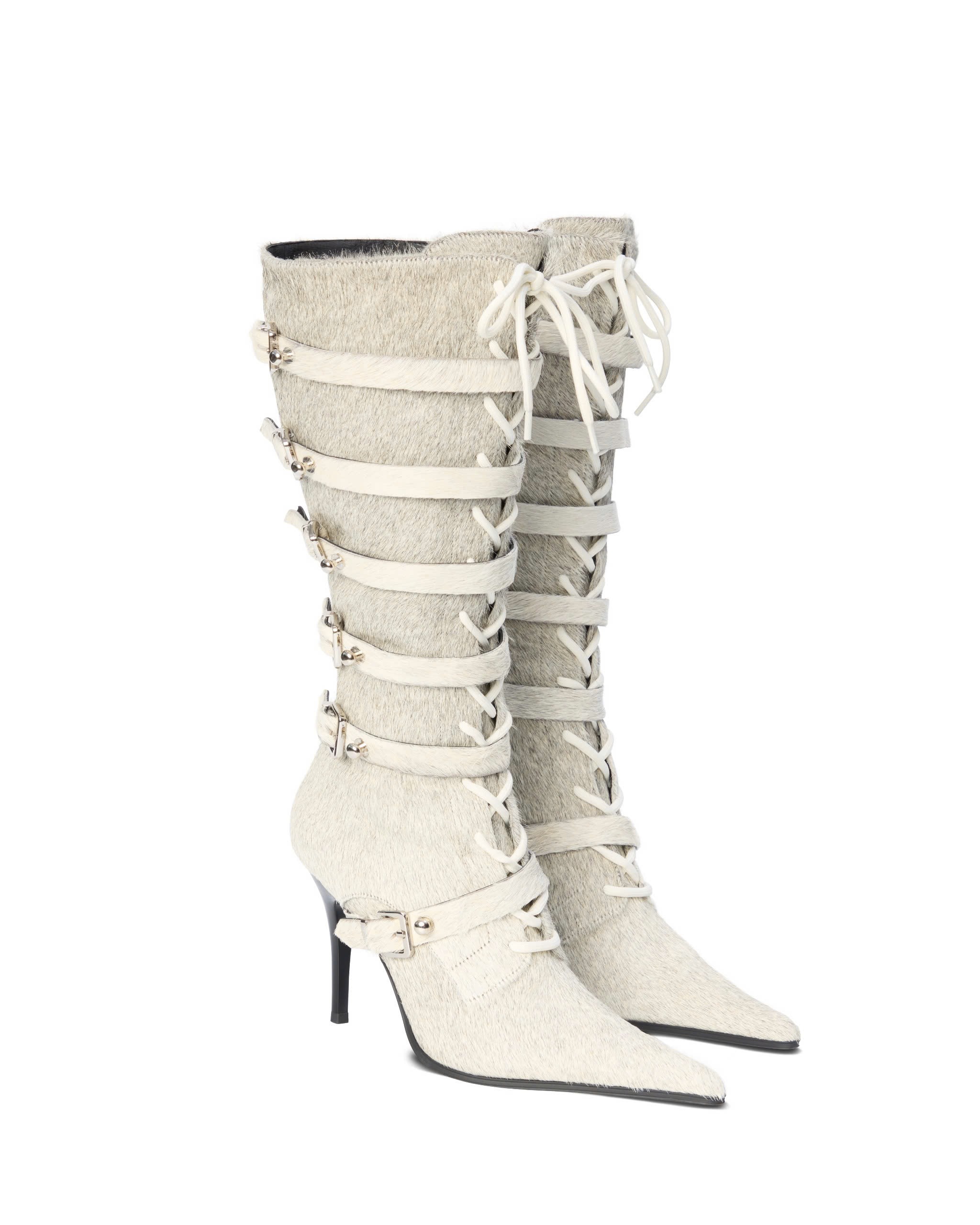 Calf-high shaft, featuring front lace-up detailing and a side metal zipper.