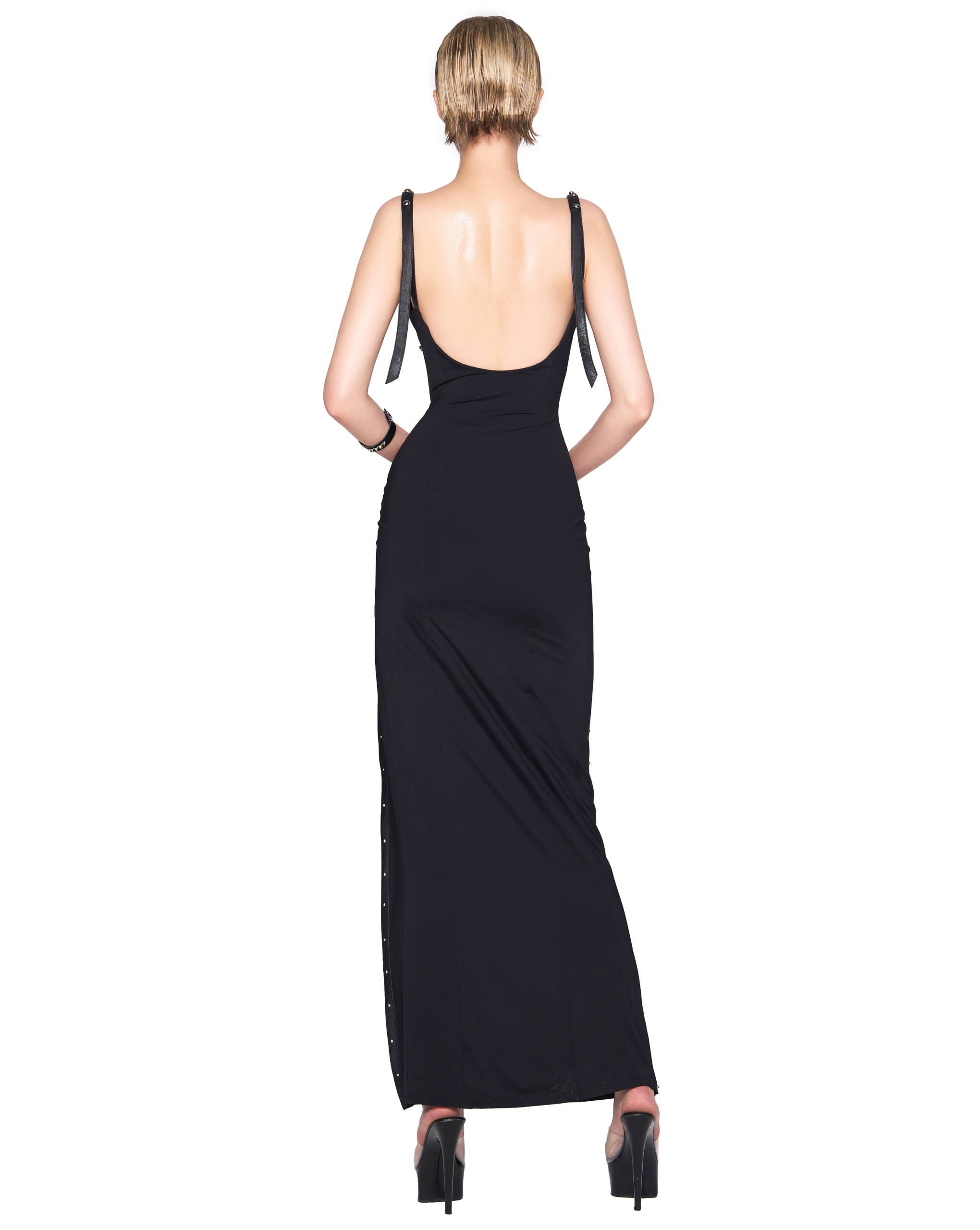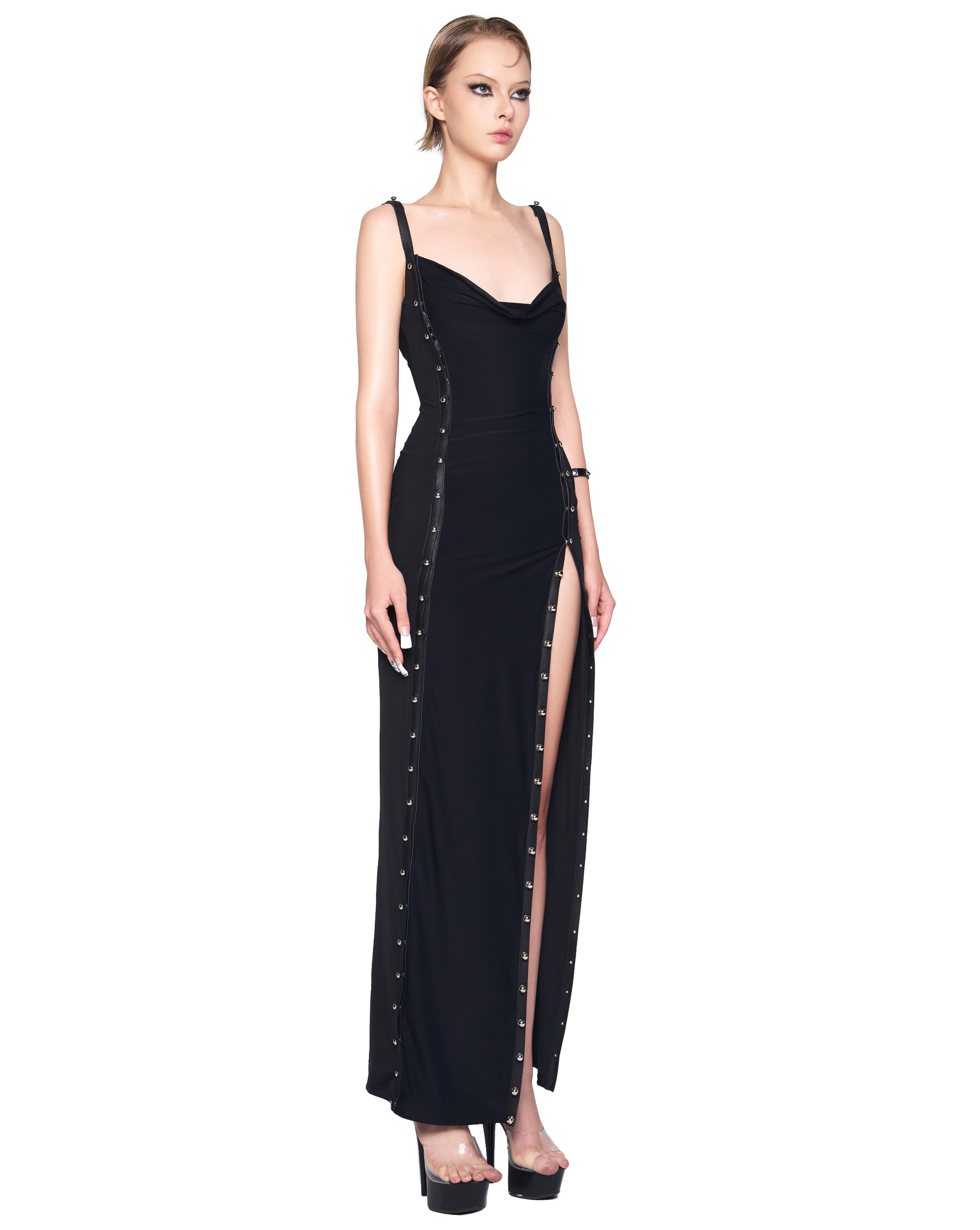 Adjustable leather straps with dome studs allow for customizable exposure.