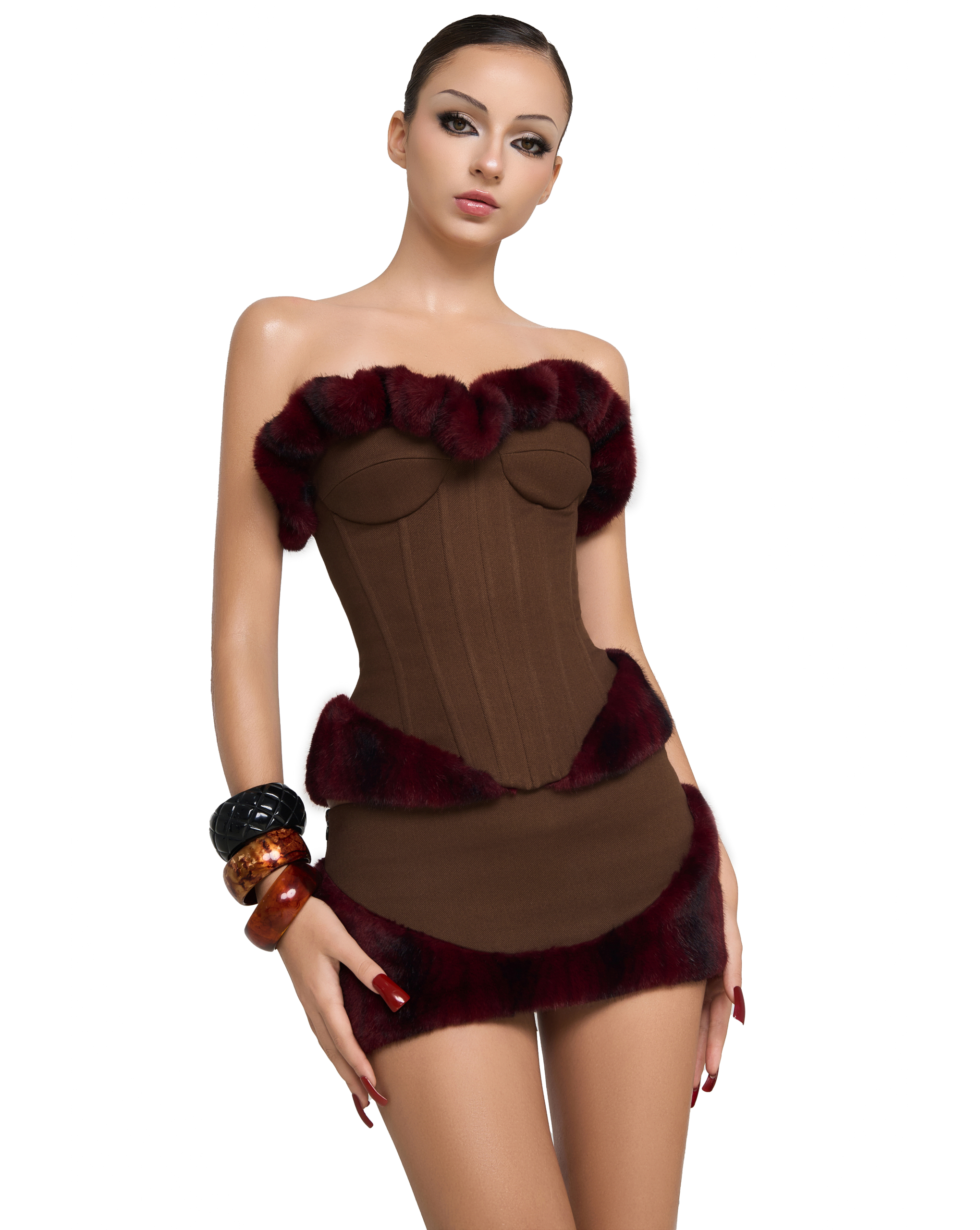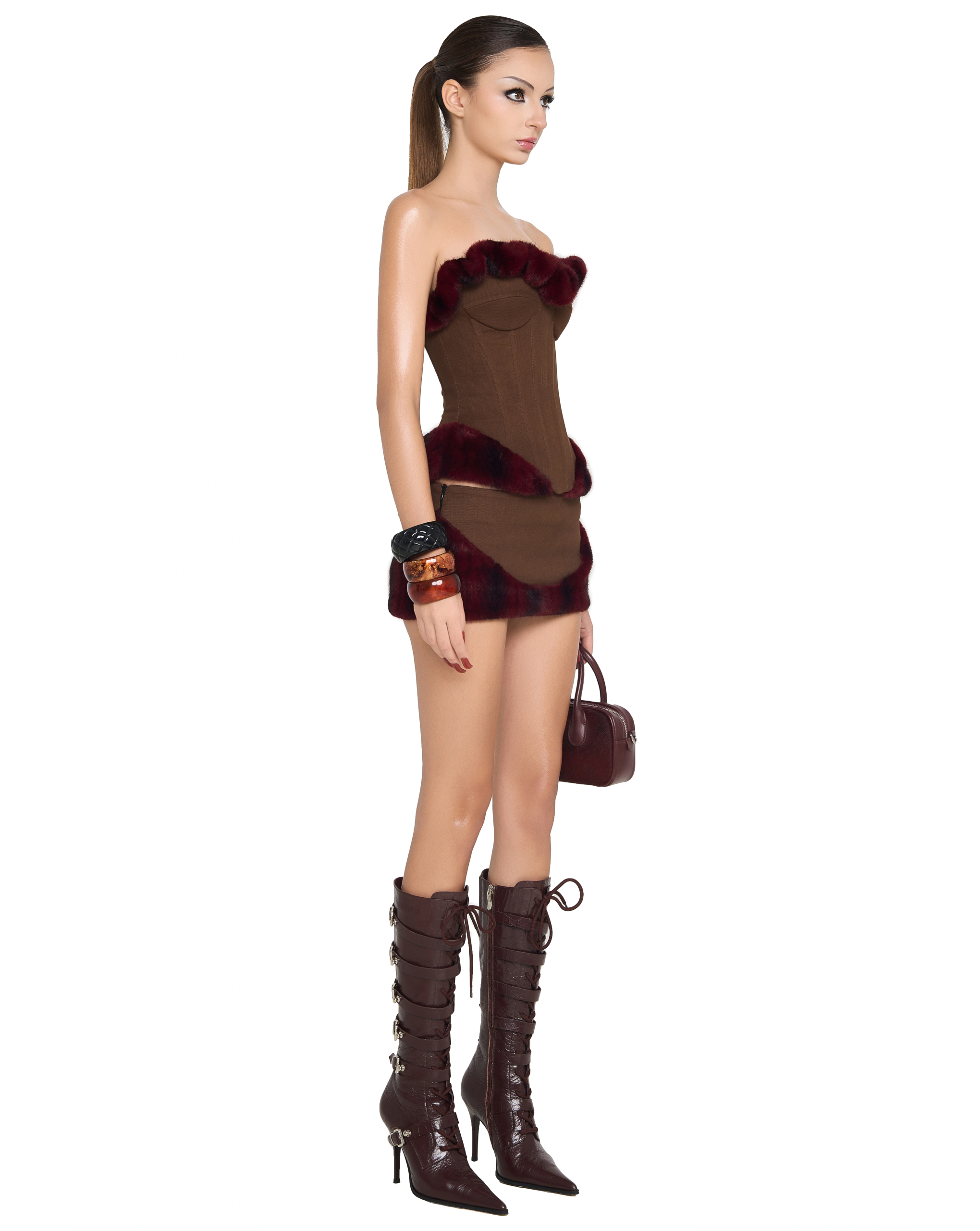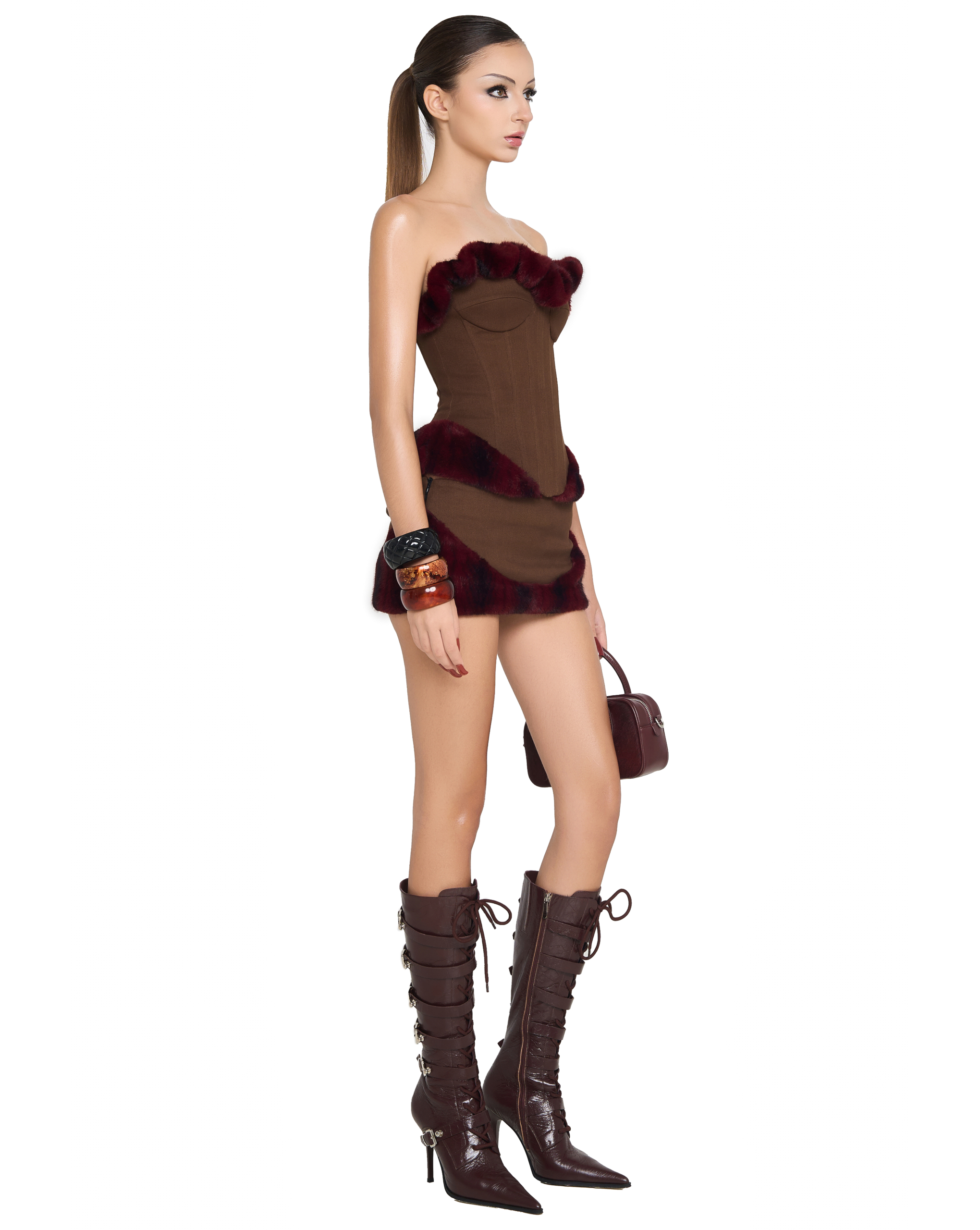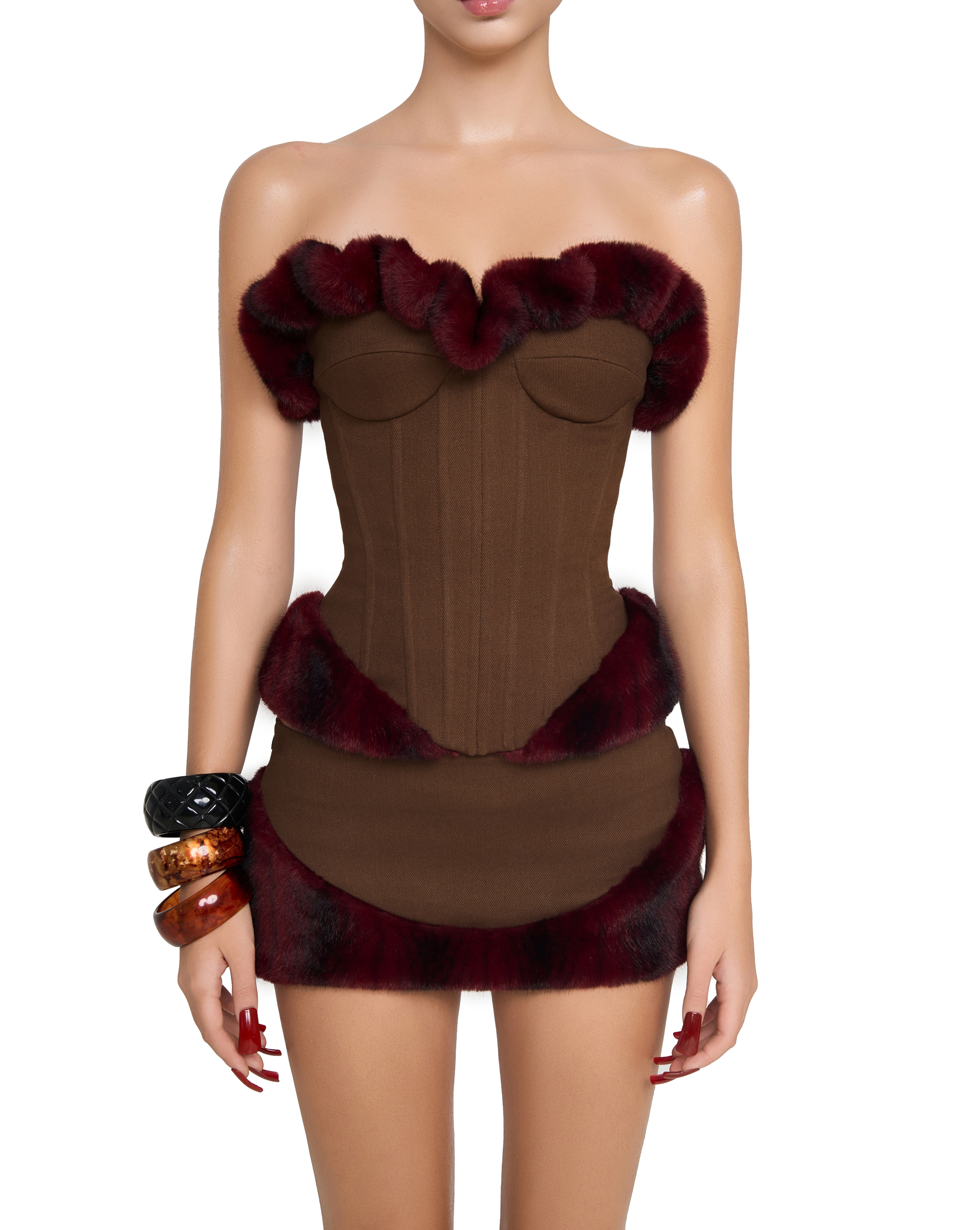Fitted mini skirt with faux fur hem and side zip