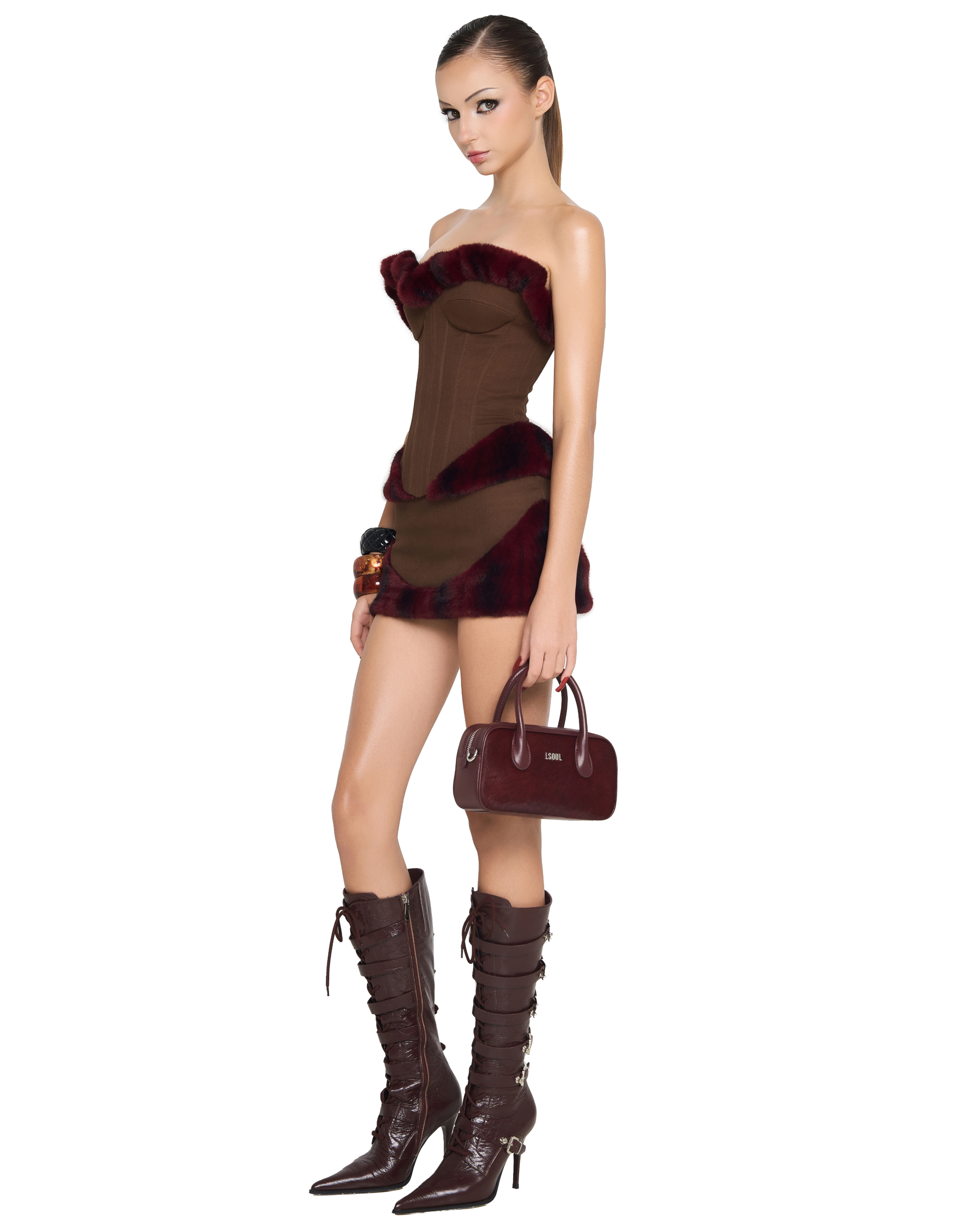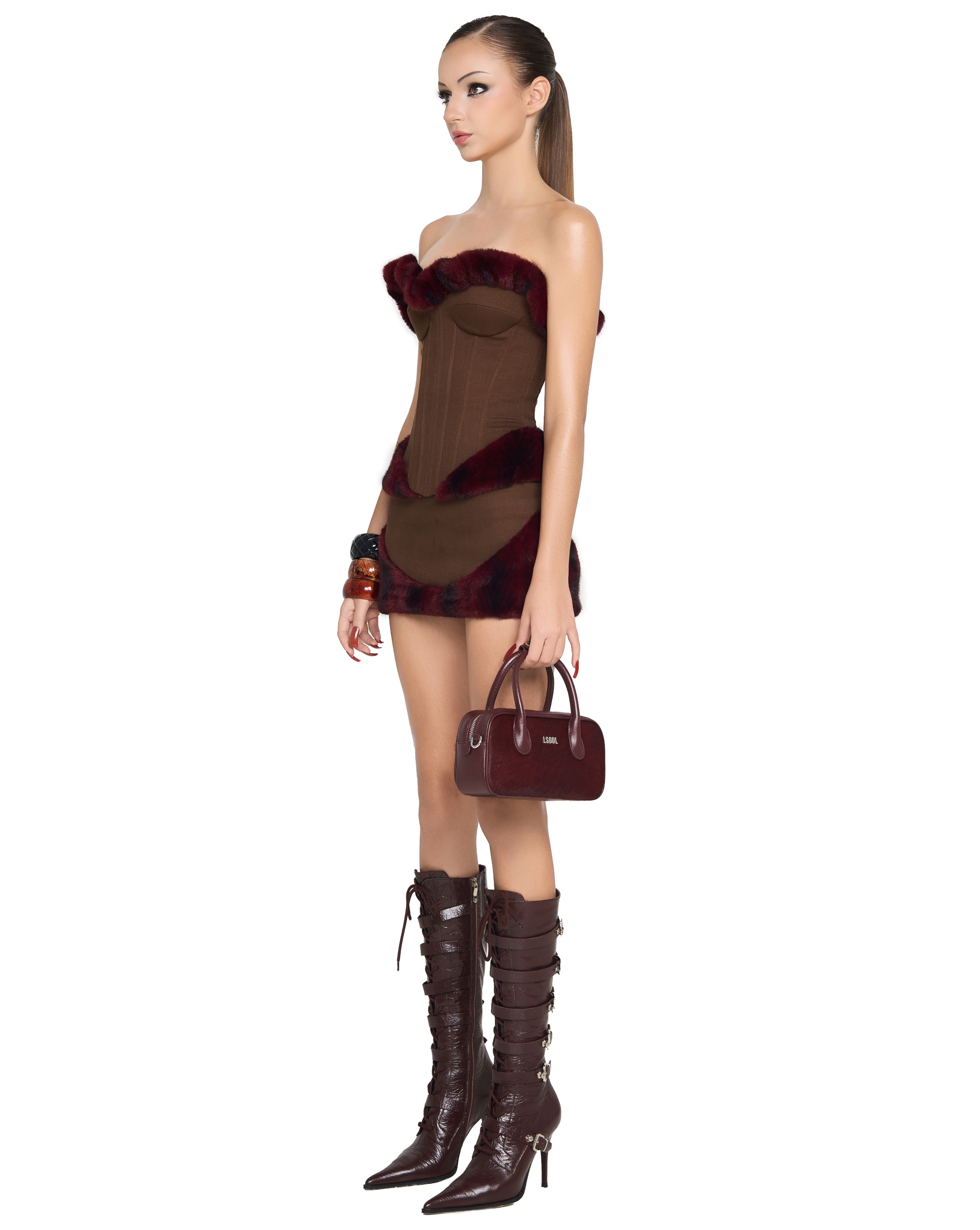 Corset-style bustier with built-in lining, structured waist.