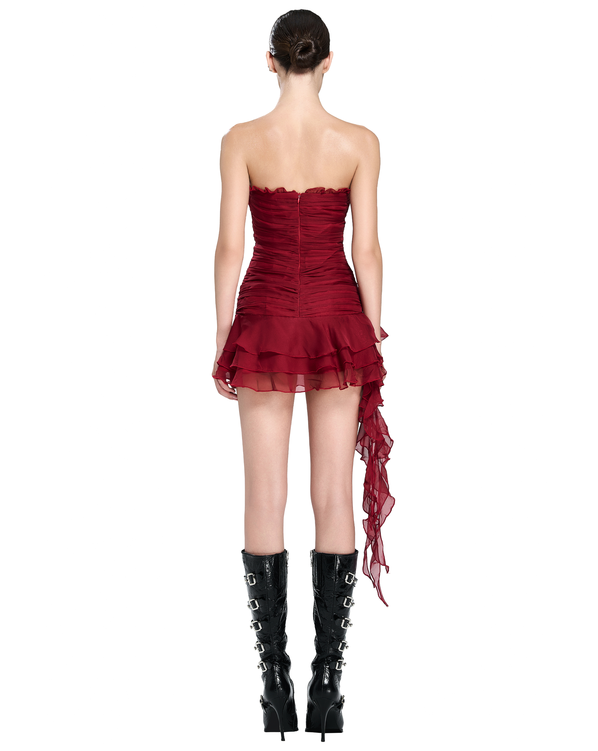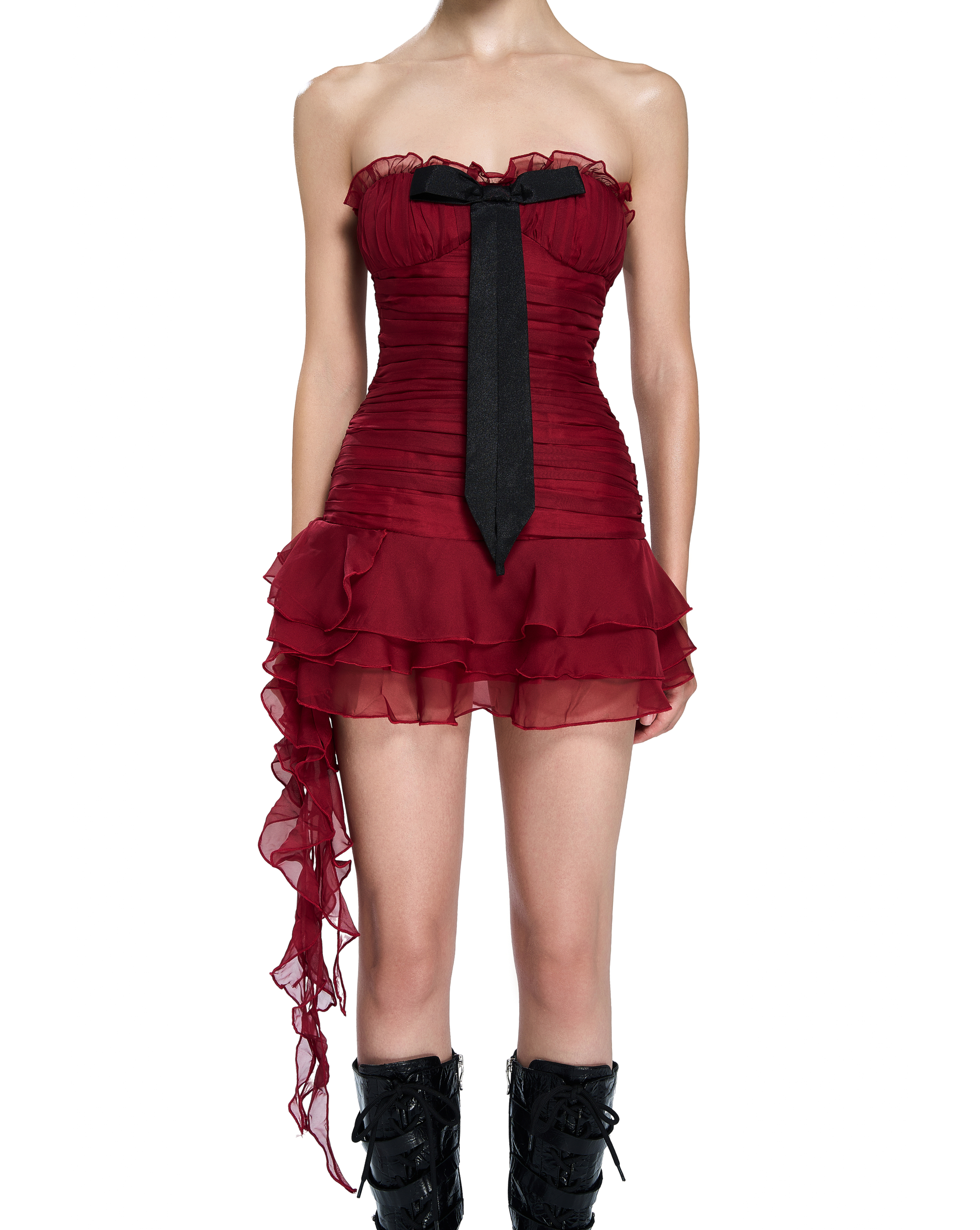 • Strapless mini dress with layered ruching