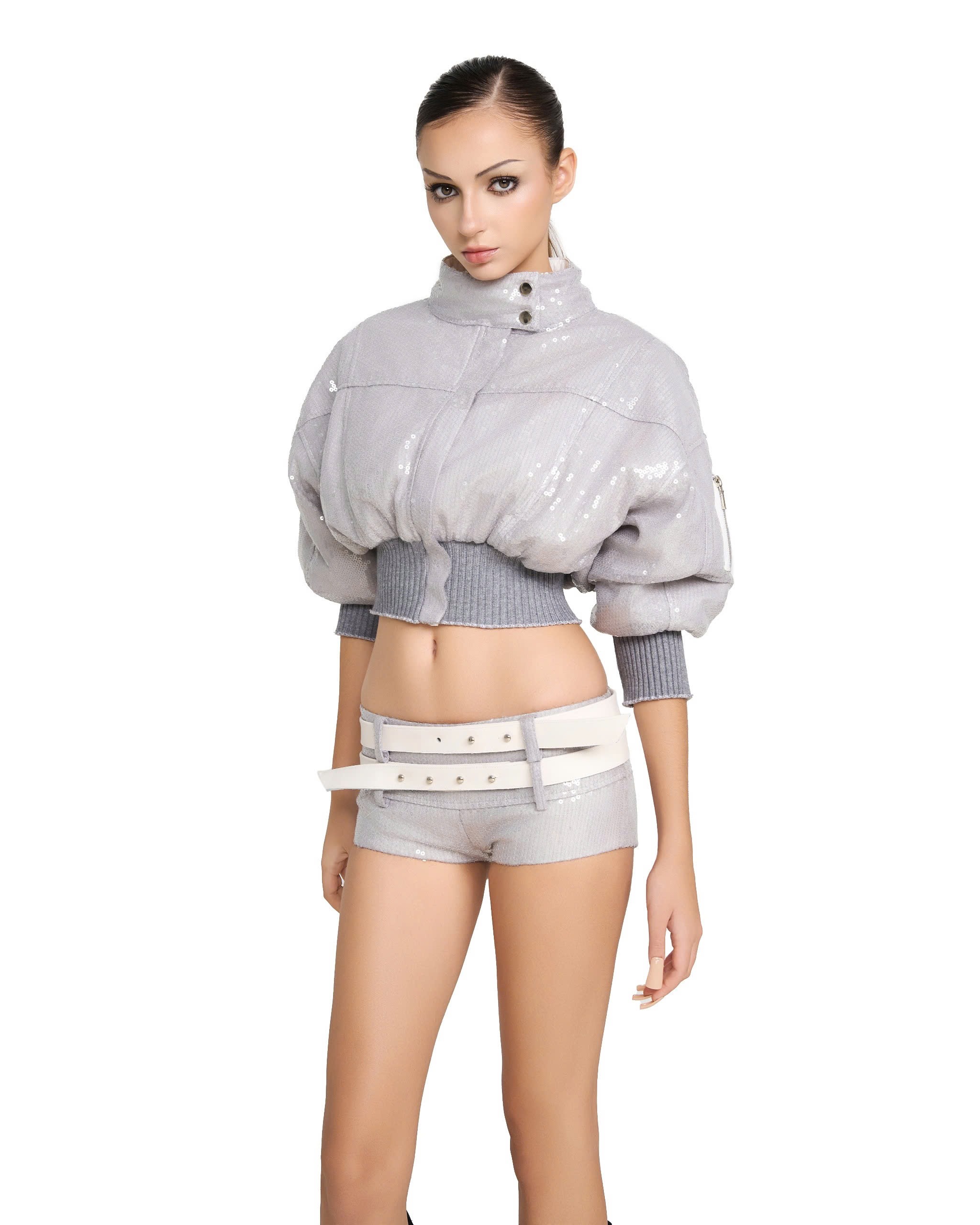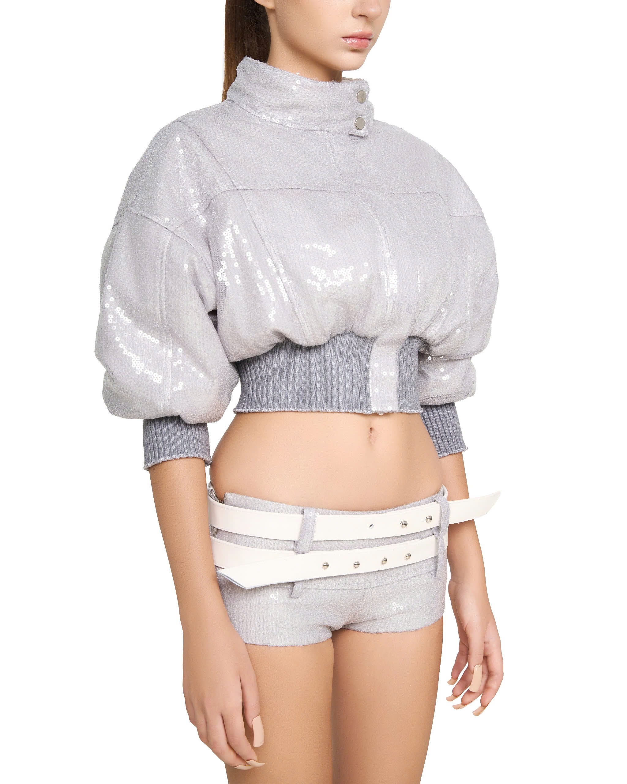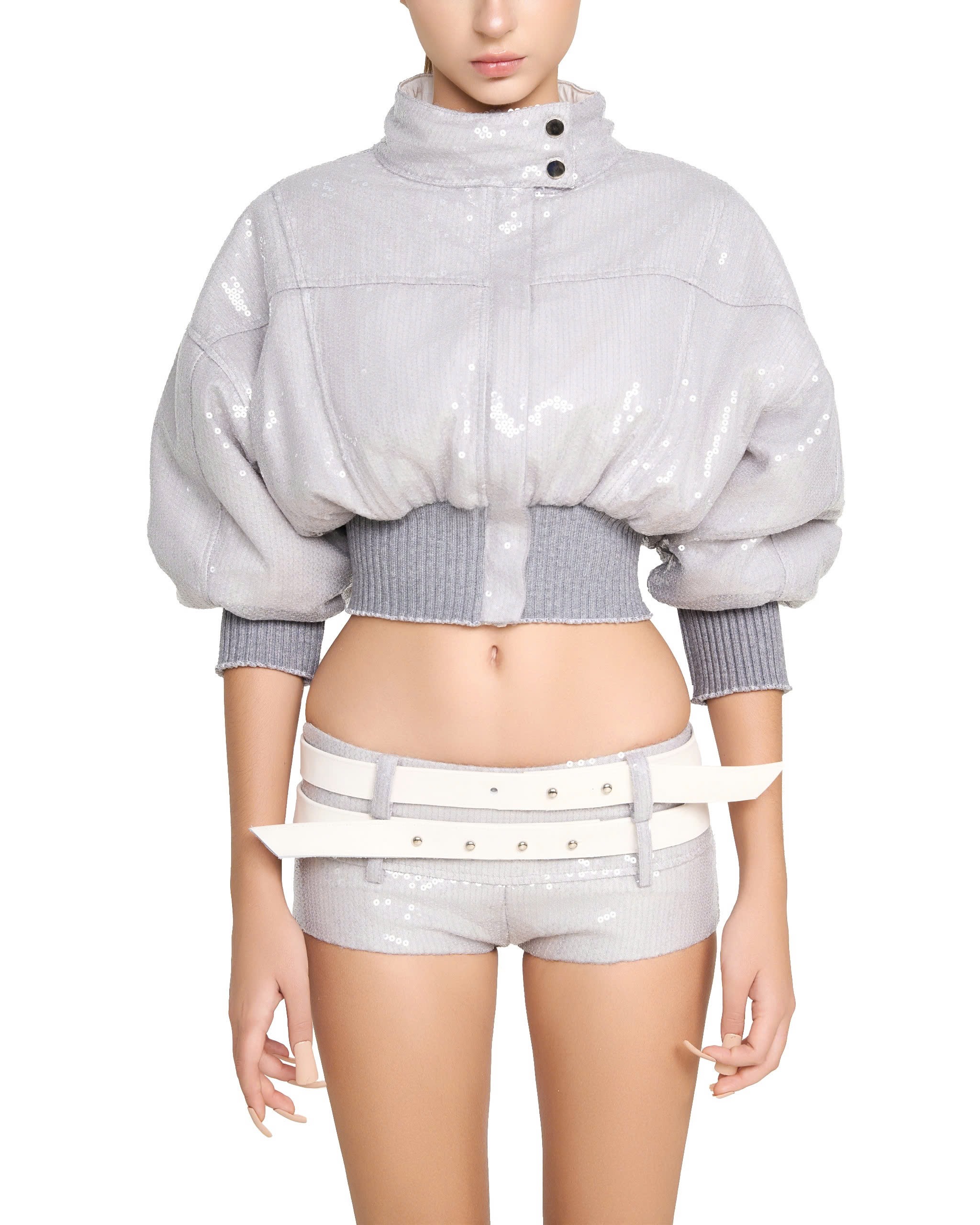 Chất liệu hai lớp có chần gòn, đính full sequin bên ngoài.