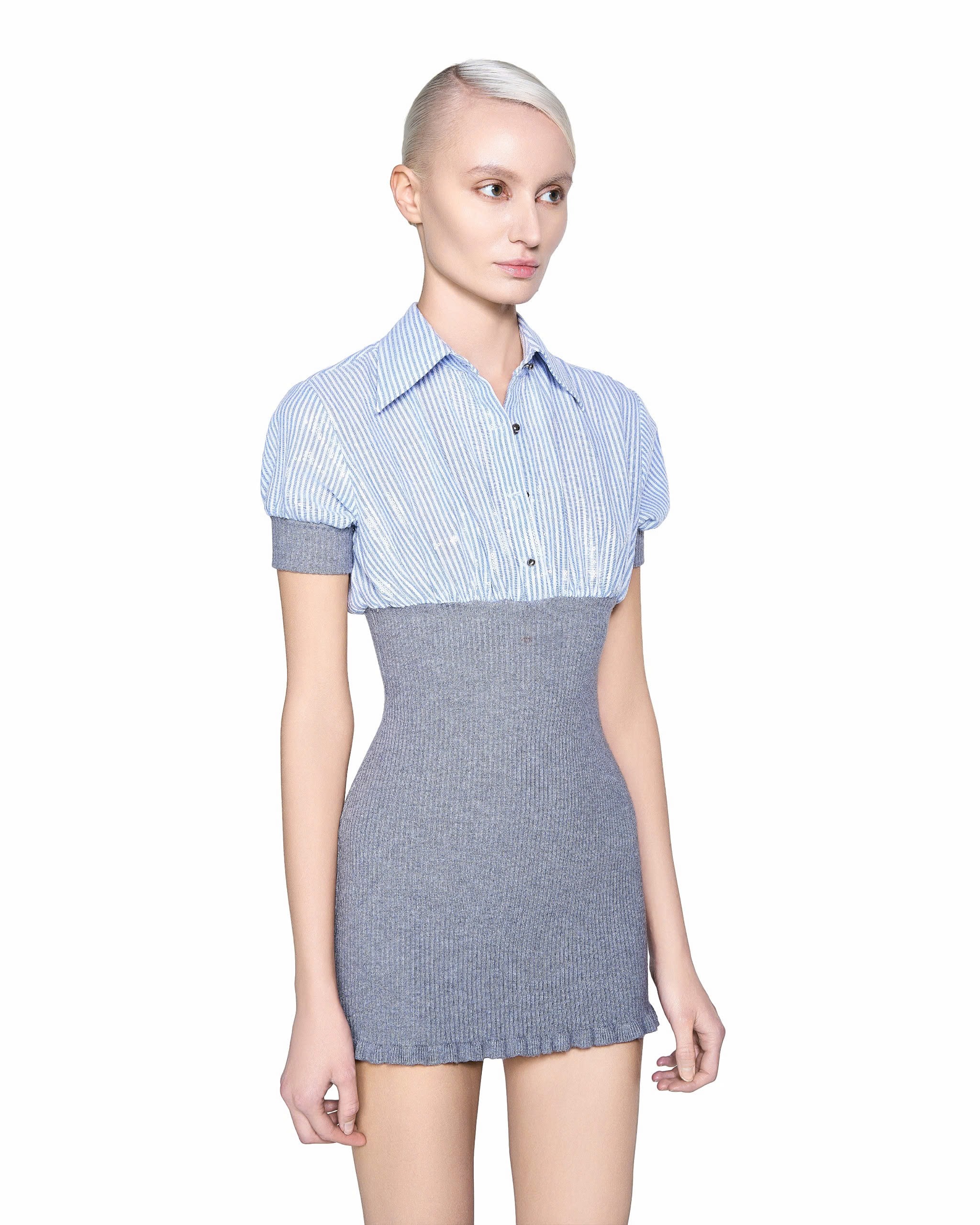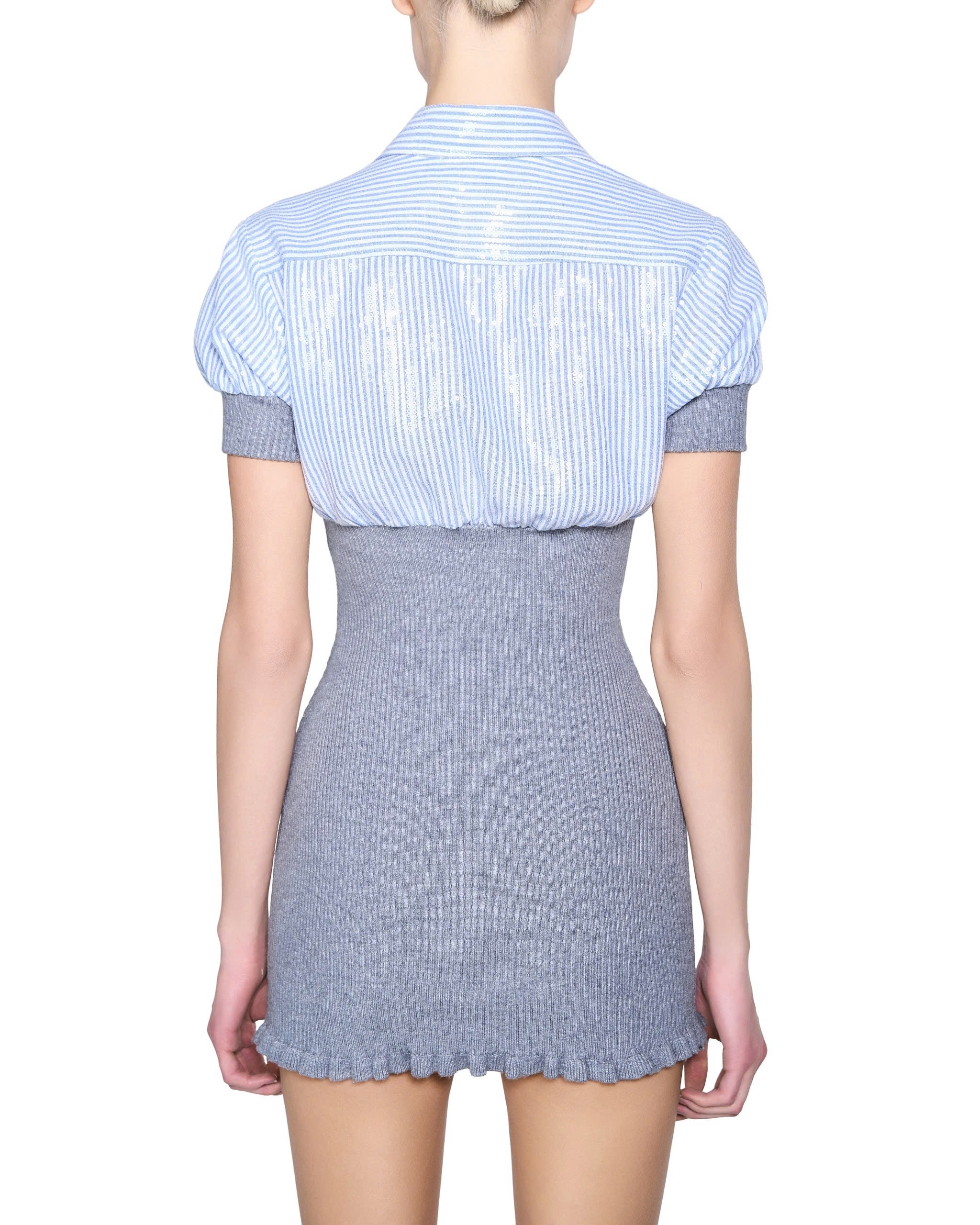 Phần trên được may từ chất liệu đính sequin, họa tiết sọc dọc.