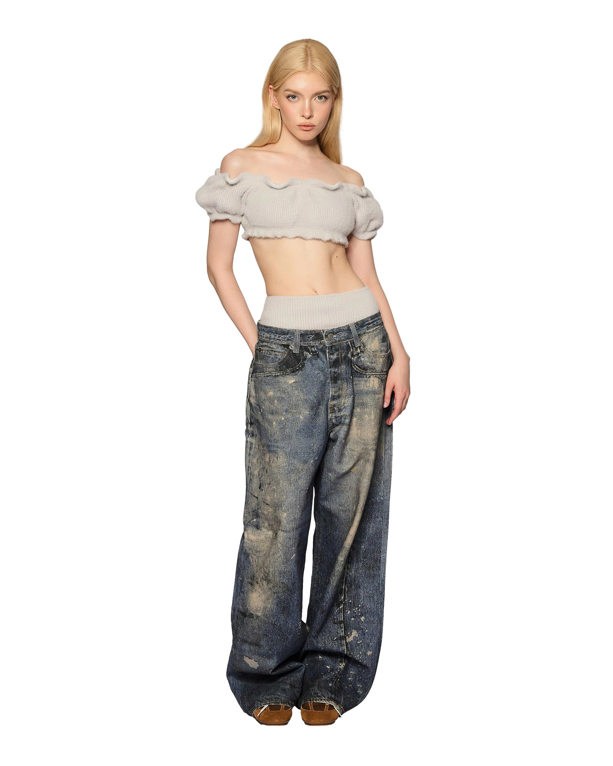 • Màu denim có thể ra màu trong vài lần giặt đầu tiên, nên giặt riêng hoặc với đồ cùng màu.